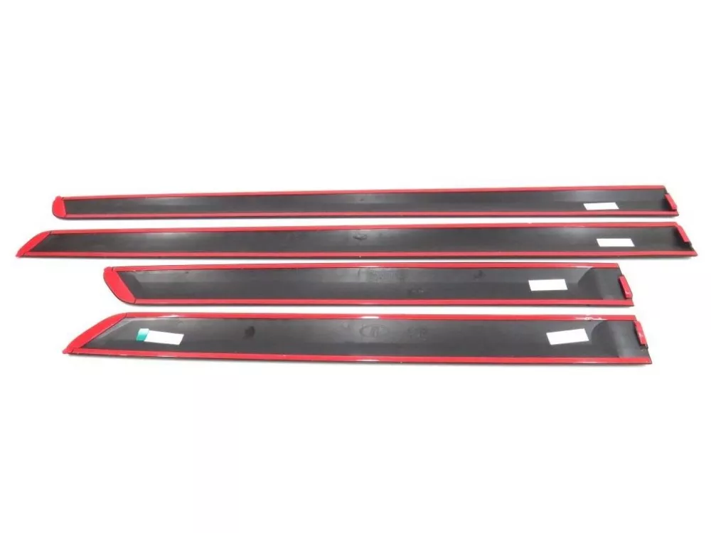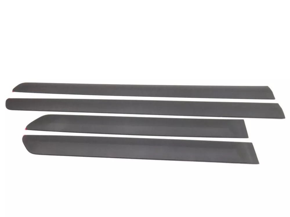 Комплект молдингов дверей для автомобилей Лада Калина, Калина-2, Гранта и Датсун.Молдинги крепятся при помощи оригинального двухстороннего скотча 3М с обратной стороны (скотч уже нанесен на молдинги), текстура пластика - шагрень (универсальная текстура, которая достойно выглядит на любом автомобиле, она меньше подвержена царапинам, и не требует оокраски).