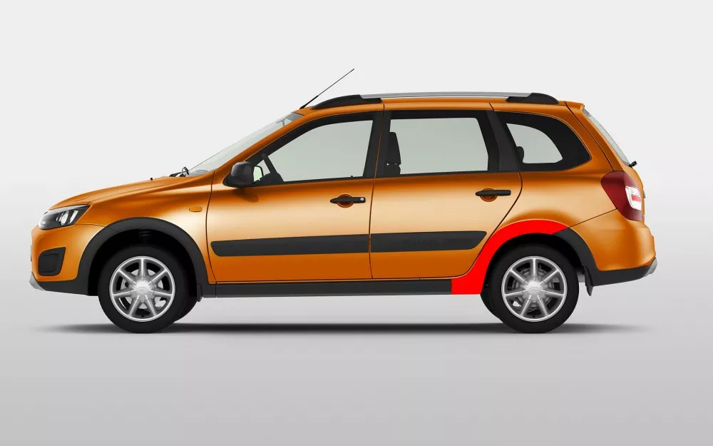 Штатная накладка на арку заднего колеса (с левой стороны) для автомобилей Калина Кросс и Гранта FL Кросс. Накладка является частью штатного кросс-обвеса.