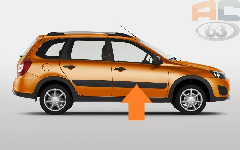 Штатный заводской молдинг на переднюю правую дверь автомобилей Калина Кросс и Гранта FL Кросс.