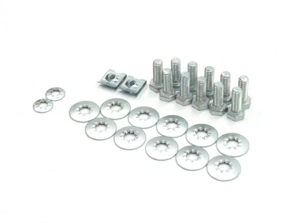 Задний бампер на автомобиле в обычной жизни снимается крайне редко. При снятии вы скорее всего обнаружите, что все болты прикипели к кузову и выкрутить их можно только лишь приложив большое усилие. Благодаря этому комплекту вам не придется угадывать, какие там были болты, вы сможете с легкостью заменить все и быть уверенным, что в ближайшее время они с легкостью открутятся.
