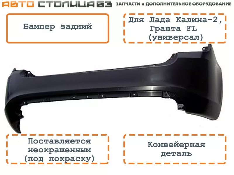 Оригинальный заводской задний бампер для автомобилей Лада Калина-2 (хэтчбек) и Гранта FL (хэтчбек). Не подойдет для Калины Кросс и Гранты Кросс.