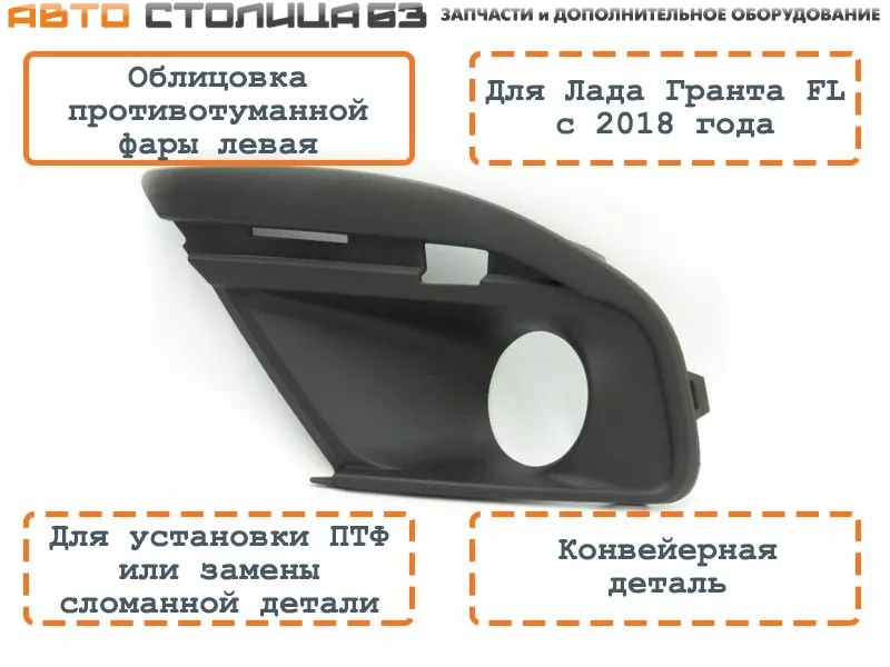 Оригинальная штатная облицовка левая (рамка ПТФ) для противотуманной фары для автомобилей Лада Гранта FL с 2018 года выпуска.