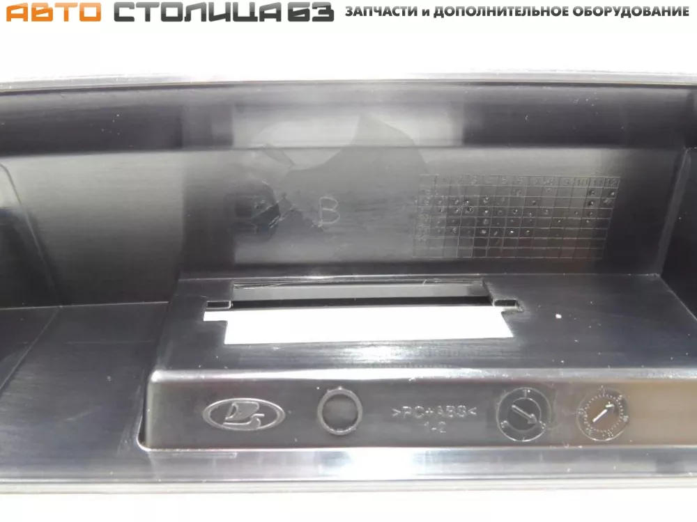 Оригинальная штатная накладка крышки багажника для Лада Гранта FL в кузове седан. Накладка имеет отверстия для кнопки открывания багажника, камеры заднего вида и фонарь освещения номерного знака.