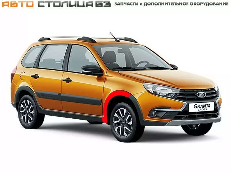 Оригинальная штатная накладка на арку переднего колеса (с правой стороны) для автомобилей Калина Кросс и Гранта FL Кросс. Накладка является частью штатного кросс-обвеса.