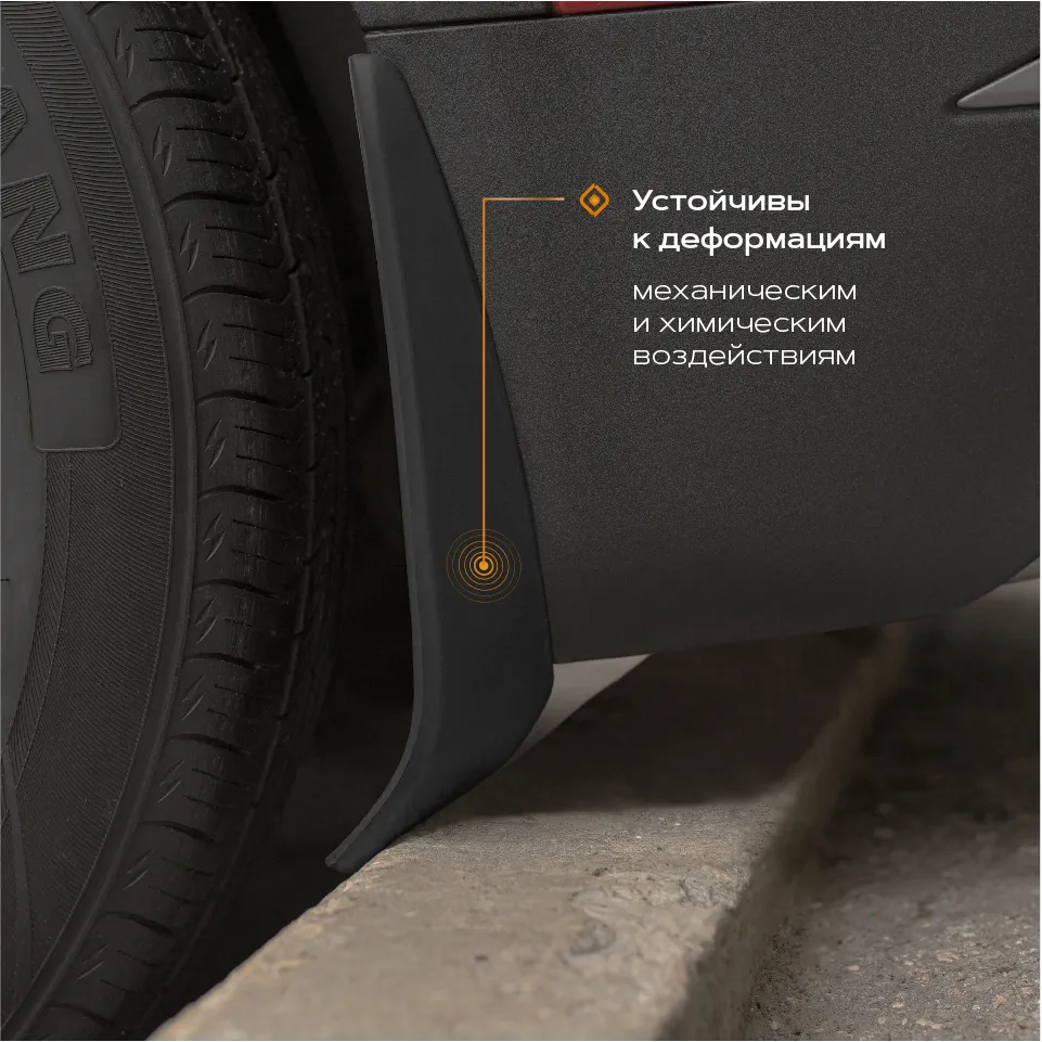 Брызговики полностью повторяют форму кузова, не требуют доработки при установке.