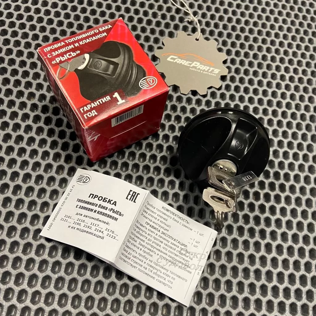 Пробка топливного бака с ключом Рысь для Лада Гранта, Калина, Приора, Нива Шеви, Нива Тревел и их модификации.