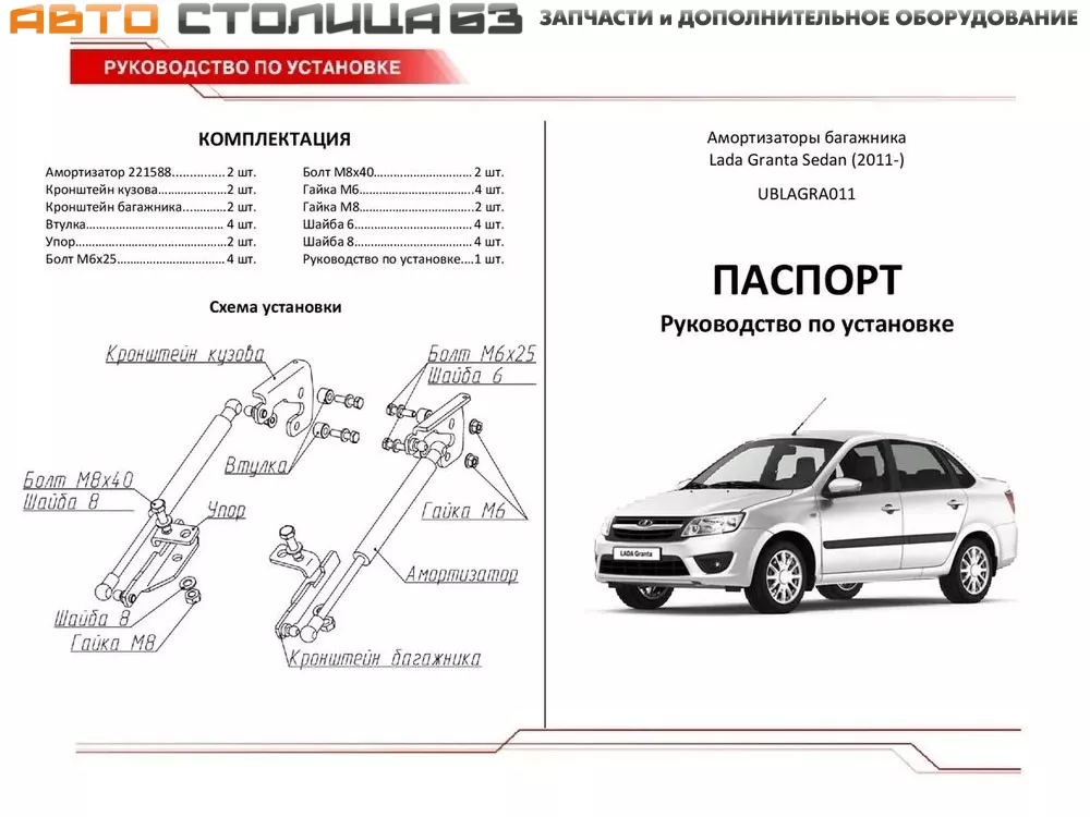Газовые амортизаторы АвтоУПОР для автомобилей Лада Гранта (седан) и Датсун он-ДО.