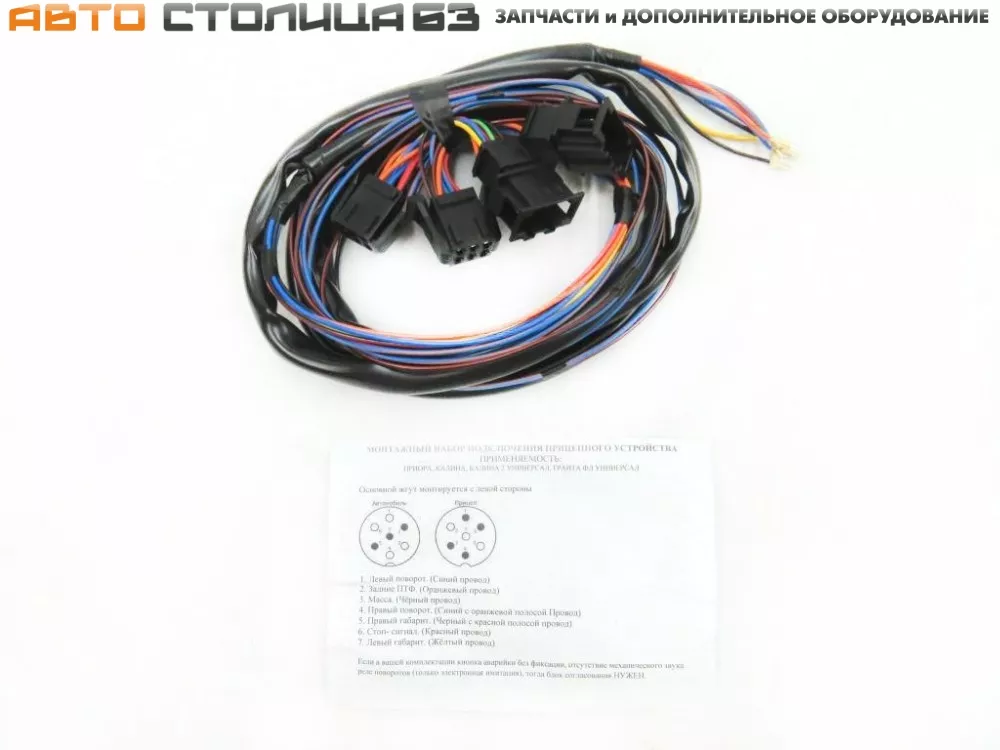 Для того, чтобы сцепное устройство полноценно выполняло свои функции, обязательно нужно вывести проводку на дублирующие световые сигналы. Для данных целей вам отлично подойдет этот монтажный набор: в нём есть вся необходимая проводка, которая собрана в аккуратный жгут и уложена в защитный чехол.