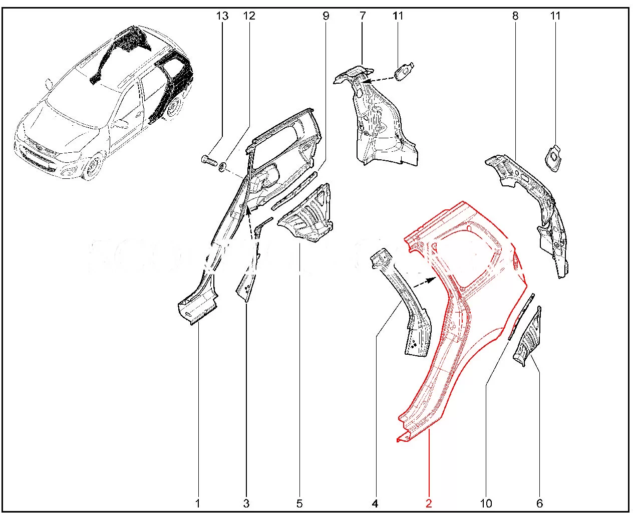 Крыло заднее левое (катафорез) для Lada Granta универсал, Kalina-2 универсал.