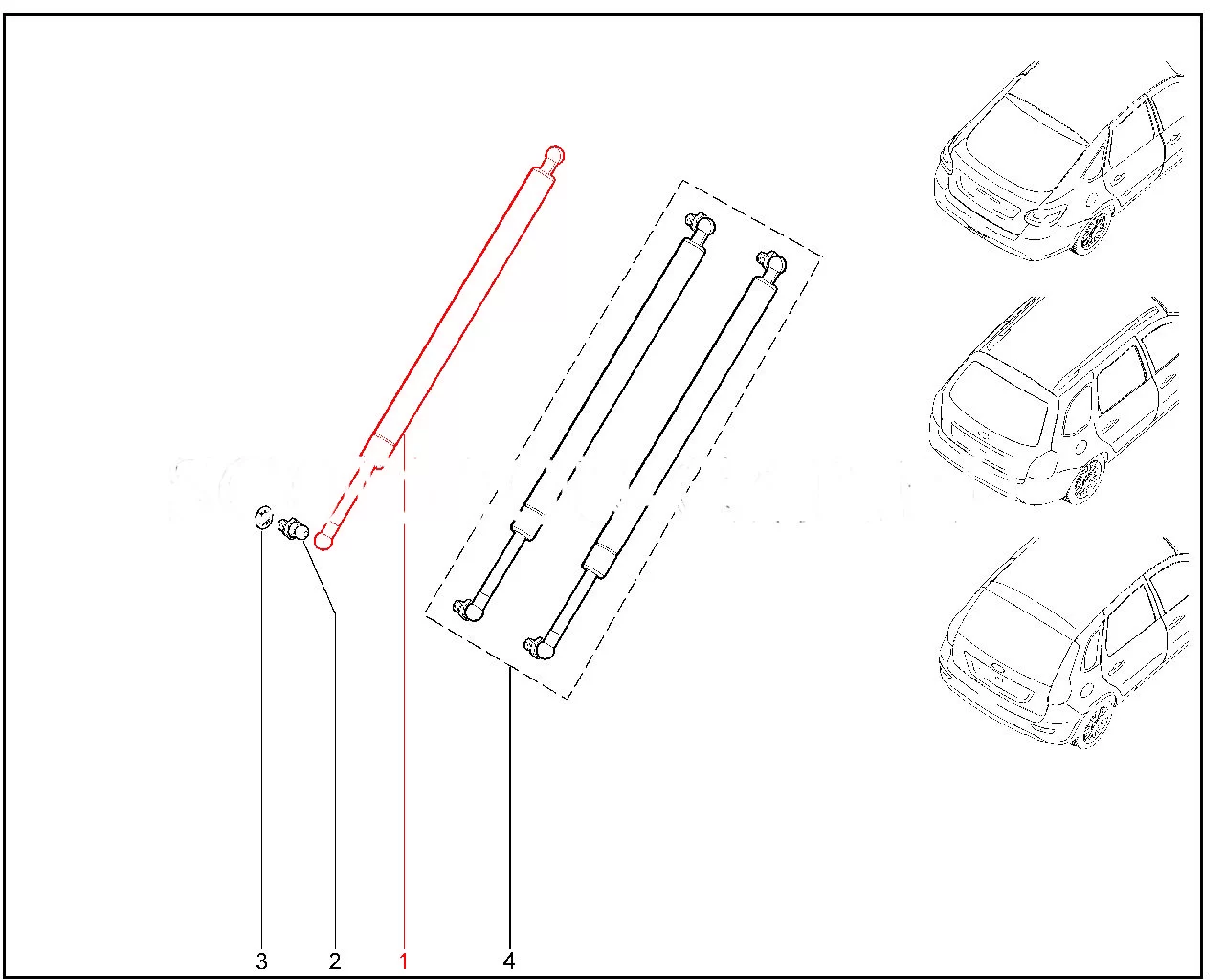 Штатный упор газовый двери задка с шарнирами в сборе для Лада Гранта лифтбек.