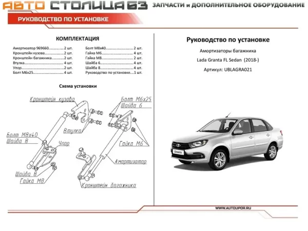 Упоры багажника для Лада Гранта FL с 2018 года АвтоУпор