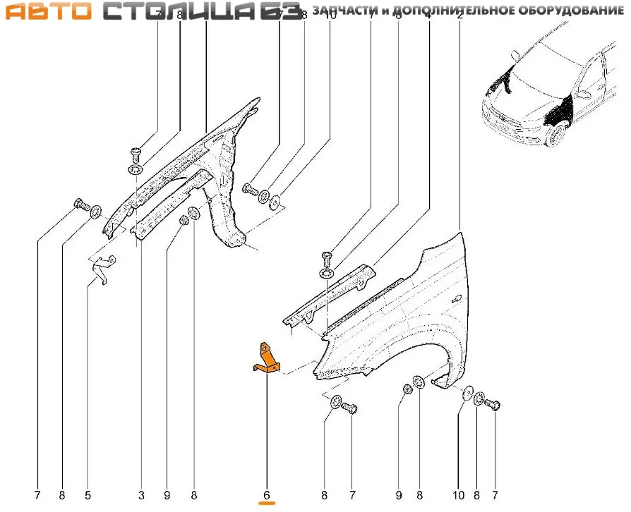 Оригинальный заводской кронштейн крепления переднего крыла левый (со стороны водителя) для автомобилей Лада Гранта FL.