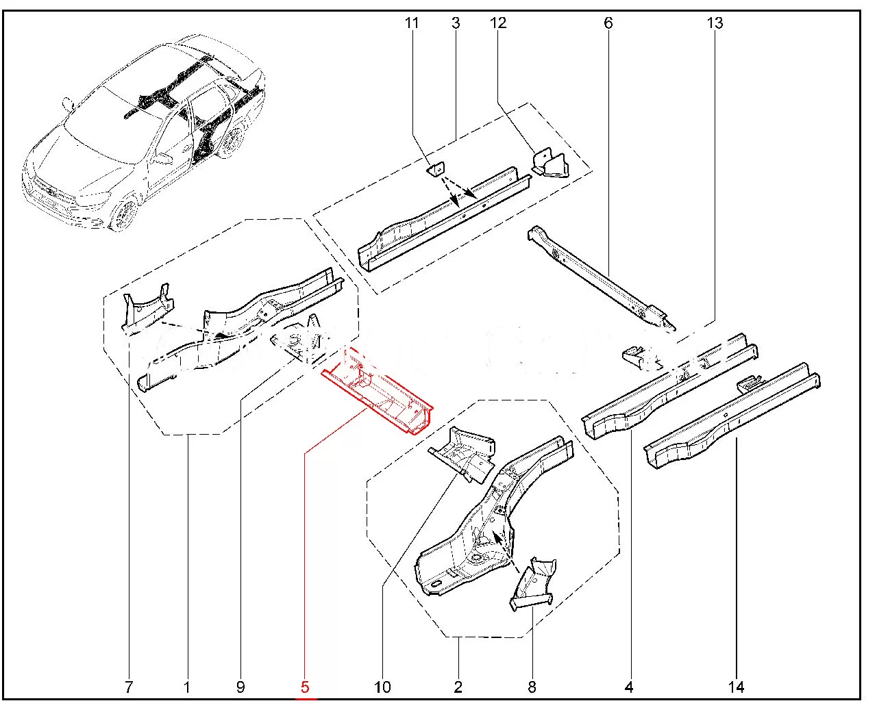Штатный оригинальная поперечина пола средняя в сборе для Lada Granta, Kalina-2.