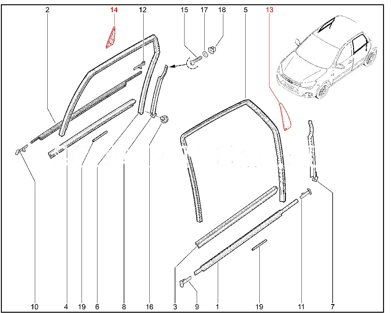 Штатный оригинальный уголок задней двери для Lada Granta лифтбек.