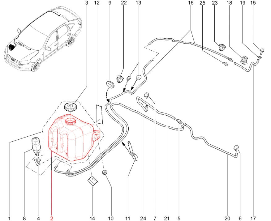 Штатный оригинальный бачок омывателя ветрового стекла для Lada Granta, Kalina-2.