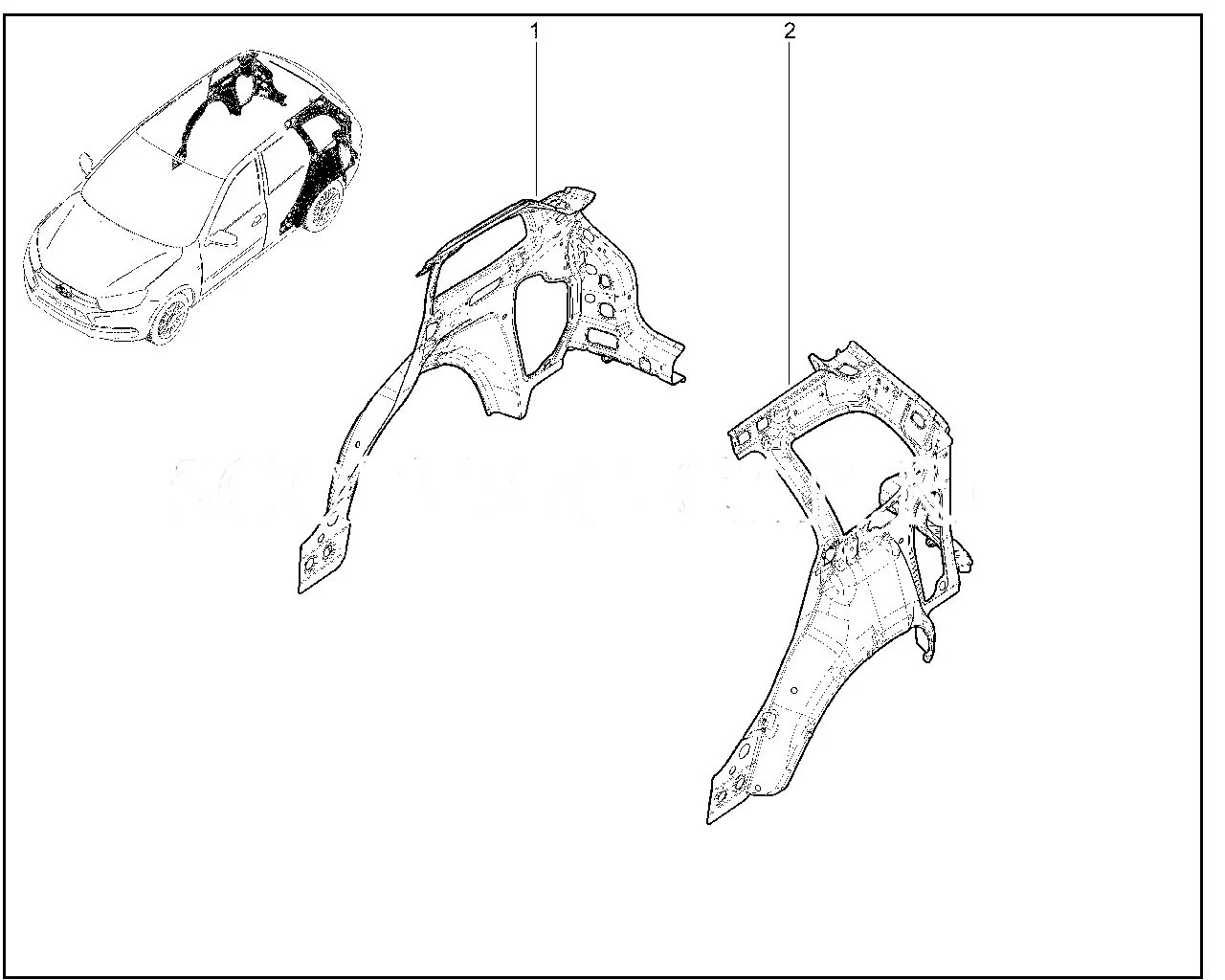 Штатная оригинальная панель боковины внутренняя (катафорез) для Lada Granta универсал, Kalina-2 универсал.