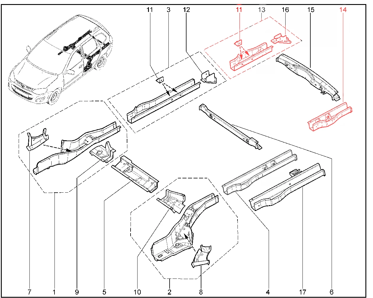 Штатный оригинальный лонжерон пола задний в сборе для Lada Granta хэтчбек, Kalina хэтчбек.