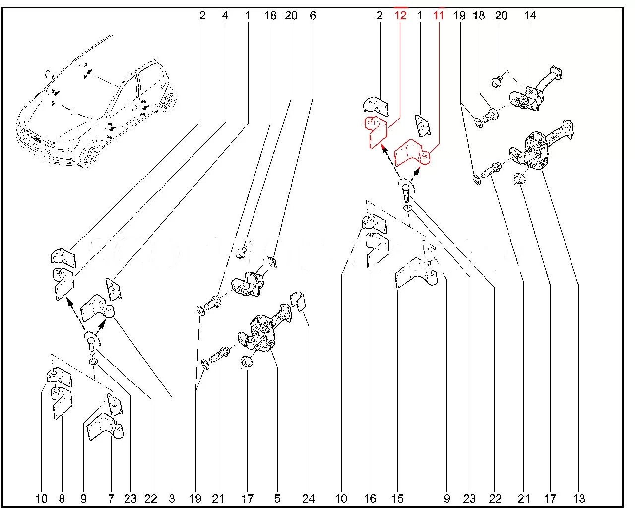 Штатное оригинальное звено неподвижное петли задней двери верхнее для Lada Granta, Kalina.