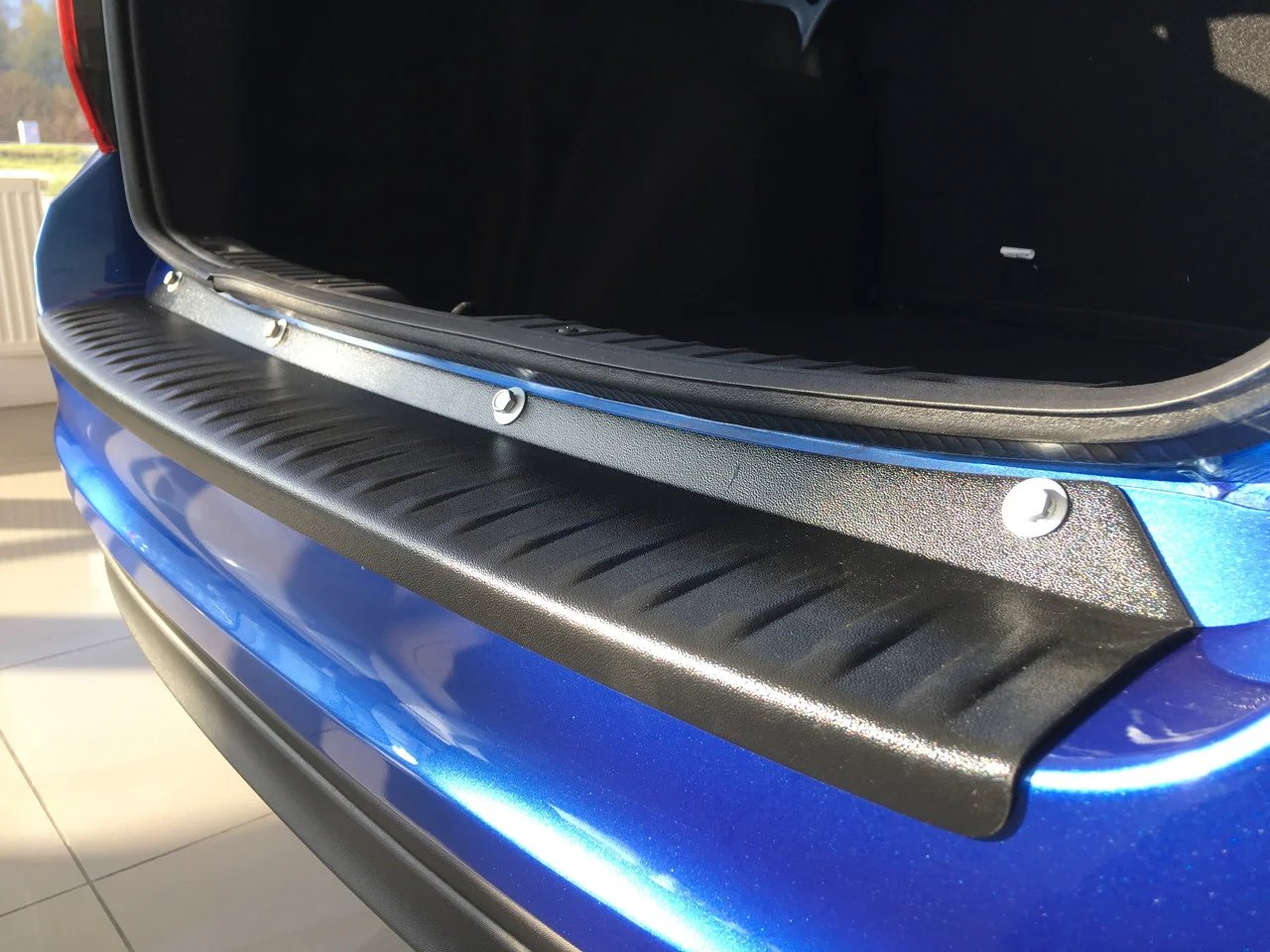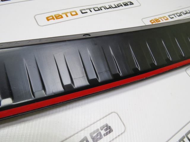 Поверхность изделия устойчива к царапинам и длительное время сохраняет привлекательный внешний вид. Накладка устанавливается на задний бампер автомобиля.