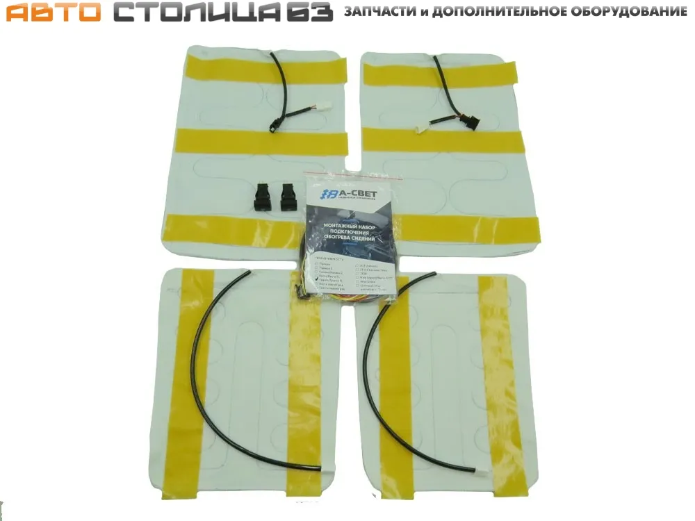 в комплекте 4 нагревательных элемента, проводка с разъемами, кнопки включения, схема подключения.