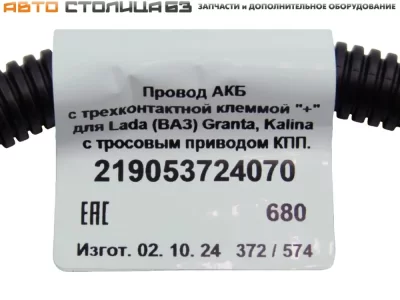 Провод АБК плюсовой для автомобилей Лада Гранта, Калина-2, Датсун. Клемма трехконтактная МТА с крышкой. Сечение провода 16мм ².