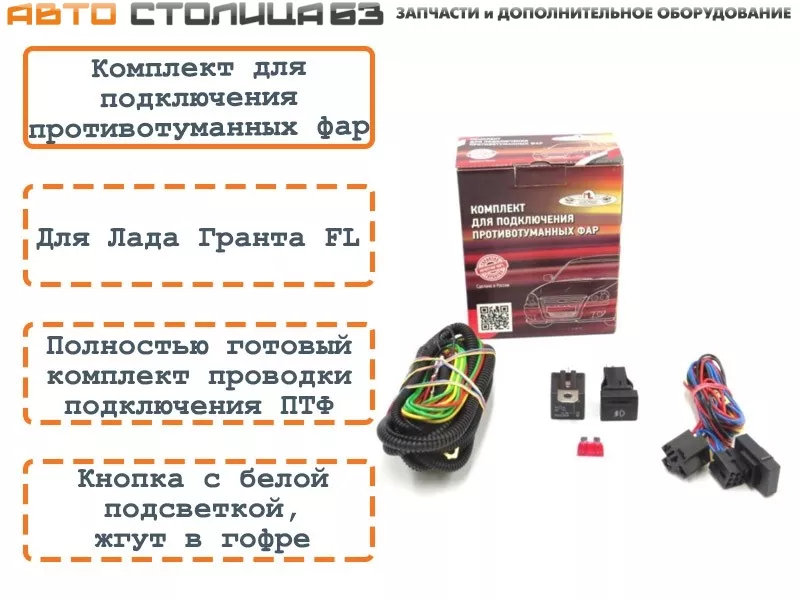 Проводка для противотуманных фар для Лада Гранта FL (цвет подсветки кнопки - белый).