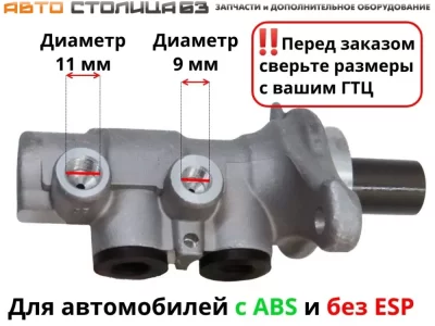 2. Сравнить диаметр отверстий под штуцеры тормозных трубок. Они должны быть 9мм и 11мм.