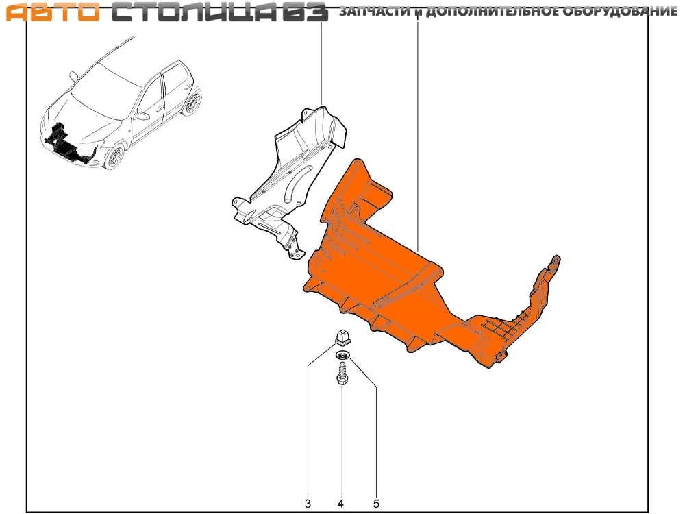 Штатный брызговик двигателя левый для автомобилей Лада Гранта, Калина-2 и Датсун с автоматической коробкой передач.