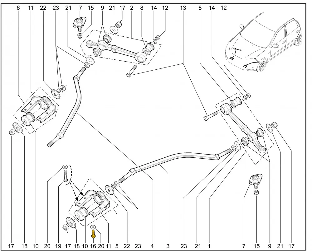 Для удобства поиска, на рисунке болт указан цифрой 16.