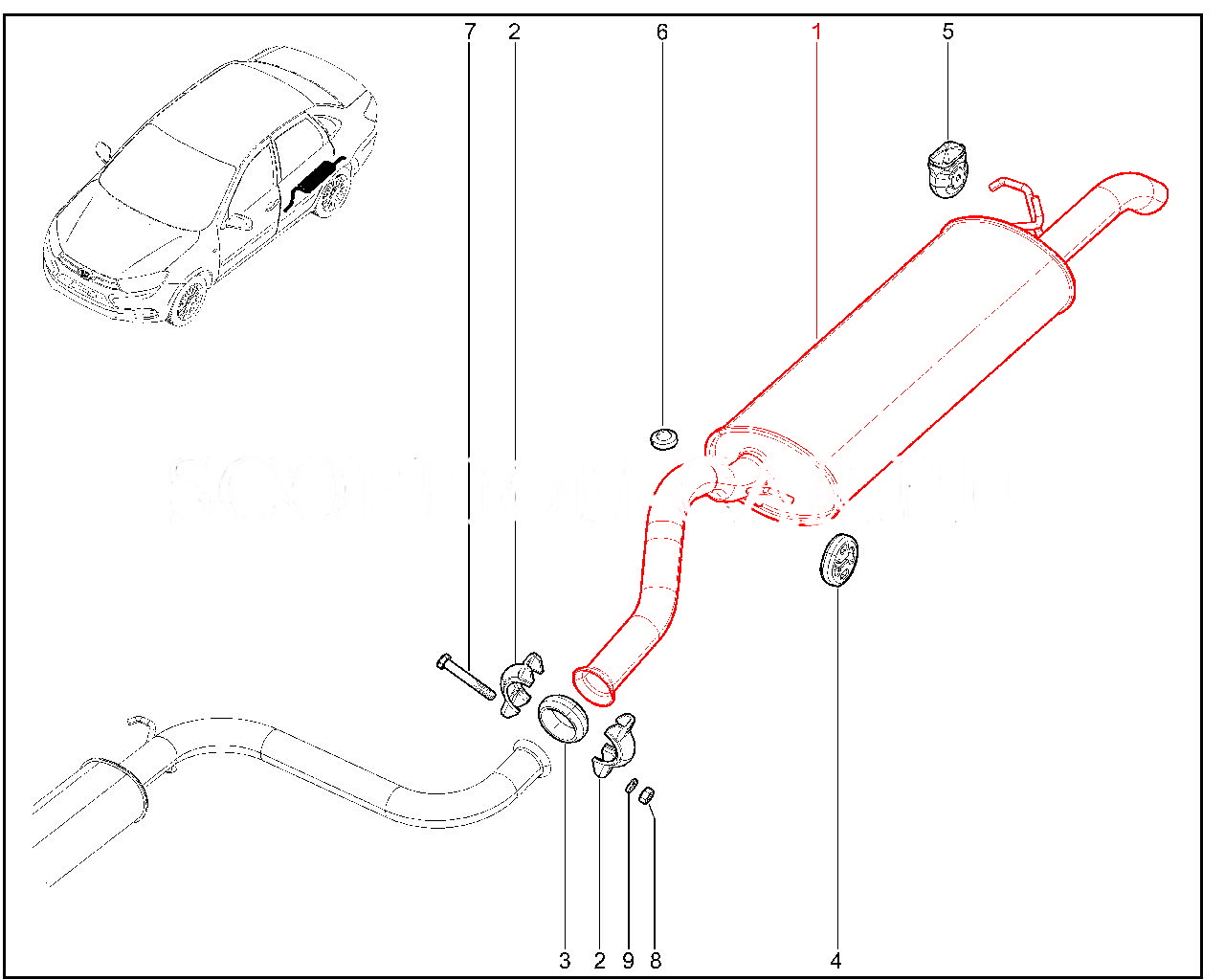 Штатный глушитель основной с трубами и кронштейнами в сборе для Лада Гранта Драйв Актив.