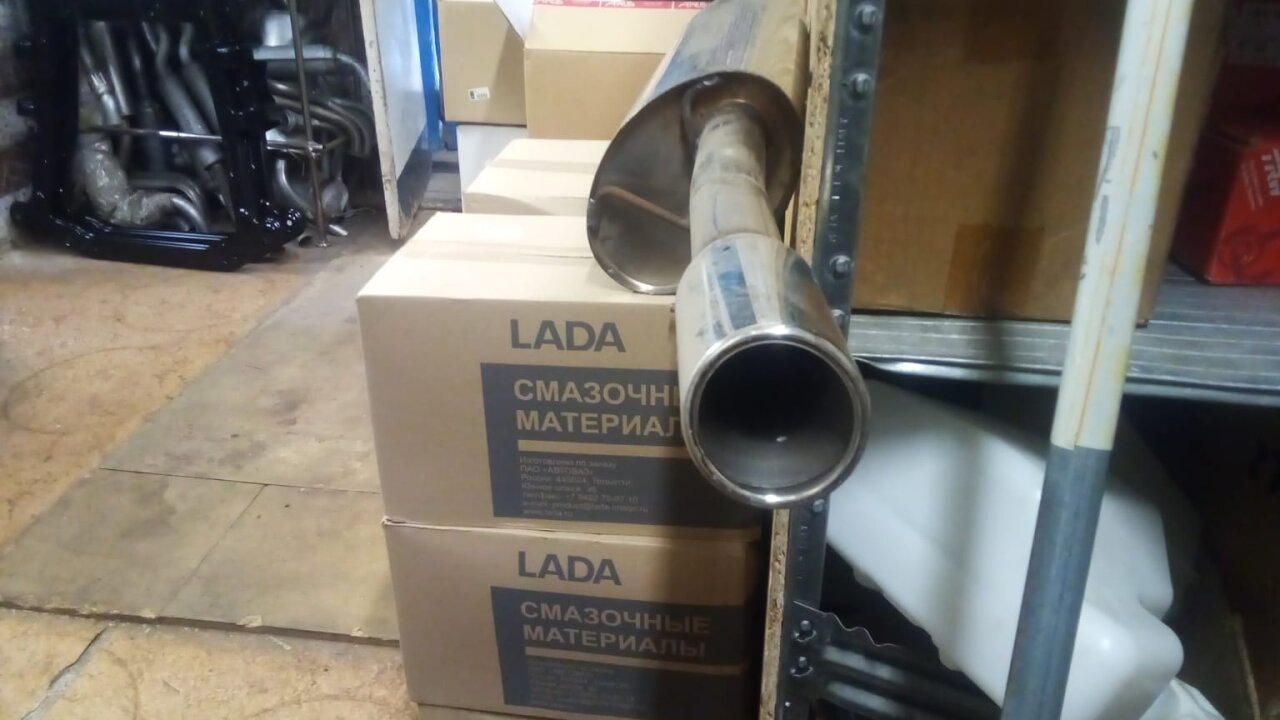 Глушитель основной с трубами и кронштейнами в сборе для Лада Гранта Спорт.
