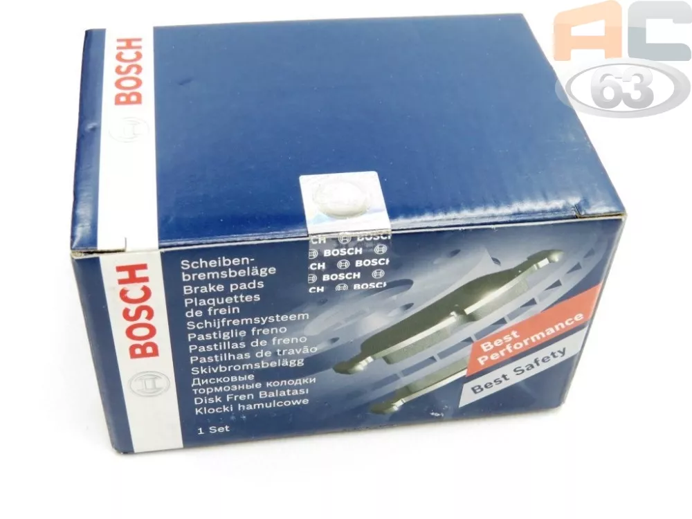 Комплект передних тормозных колодок для автомобилей Лада Калина, Калина-2, Гранта, Приора, Датсун он-ДО и ми-ДО от производителя BOSCH.