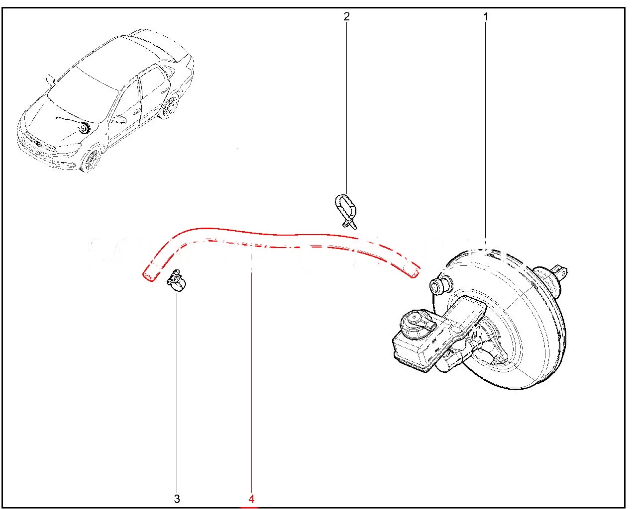 Шланг усилителя тормоза для Лада Гранта, Калина 1, Калина 2, Нива Шеви и Нива Тревел.