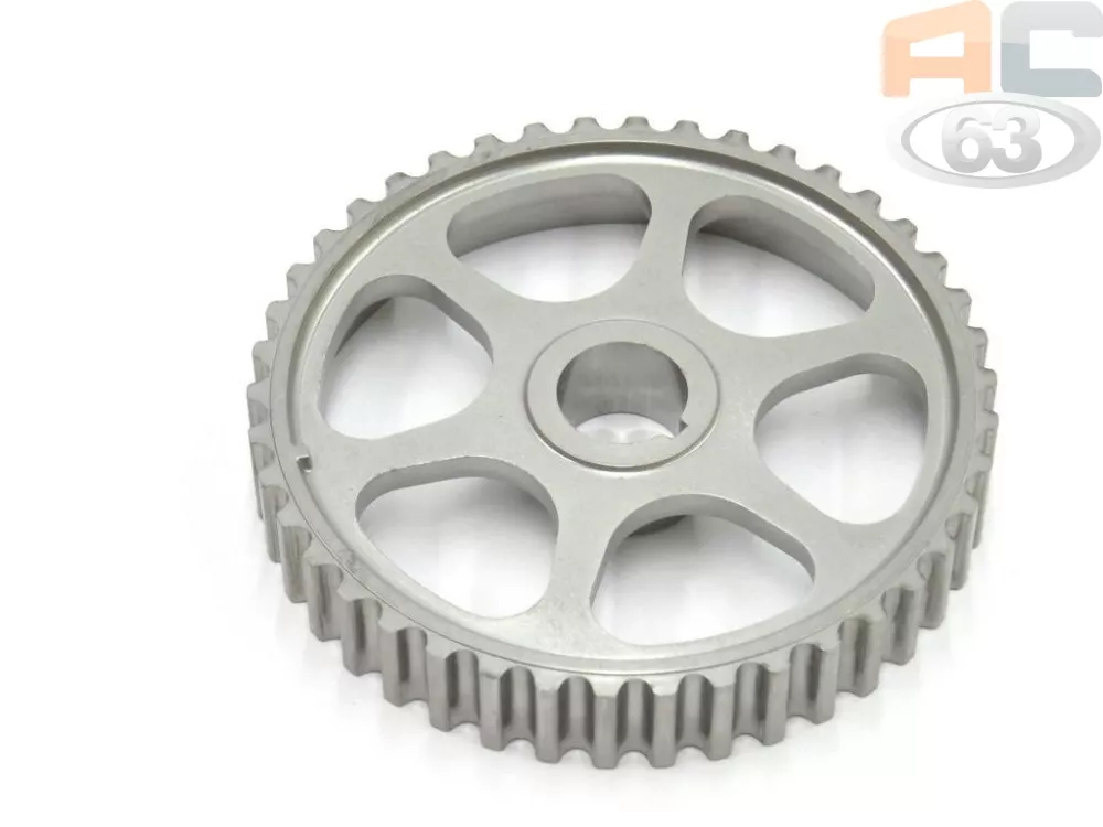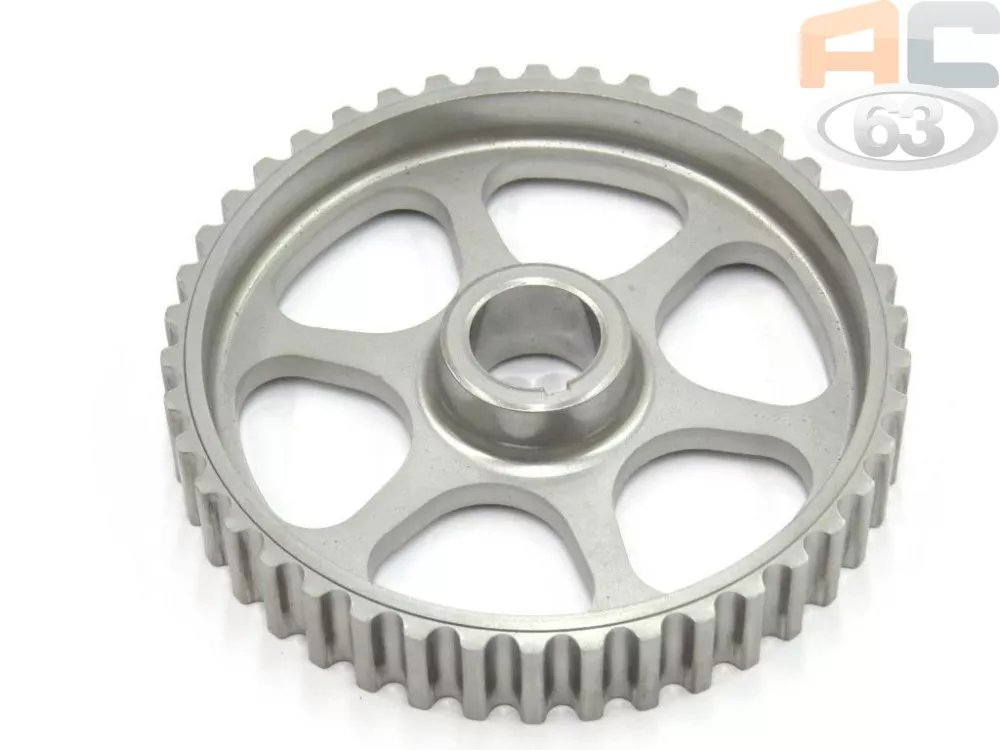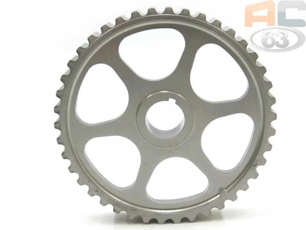 Шкив распредвала - это деталь привода газораспределительного механизма двигателя. Шкив приводится в движение при помощи зубчатого ремня, который также соединен с шкивом коленчатого вала. В некоторых шкивах есть возможность изменения положения распредвала (центральной части шкива) относительно внешней части шкива, где происходит зацепление зубьев шкива с зубьями ремня. При помощи данного шкива происходит синхронизация коленчатого вала с распределительным, что в свою очередь заставляет крутиться распределительный вал, благодаря которому запускаются остальные процессы газораспределительного механизма.