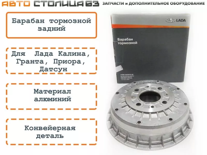 Штатный задний тормозной барабан алюминиевый для автомобилей Лада Калина, Калина-2, Гранта, Приора, Датсун, ВАЗ 2108-2115.