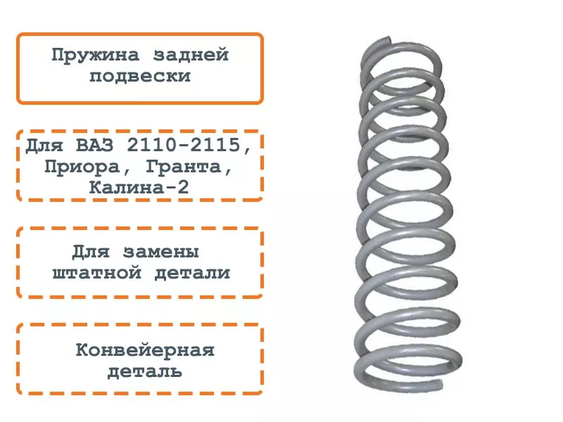 Оригинальная заводская пружина задней подвески для автомобилей ВАЗ 2110-2115, Приора, Гранта, Калина-2.
