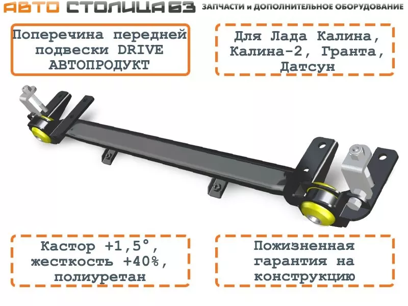 Поперечина передней подвески DRIVE с полиуретановыми шарнирами для автомобилей Лада Гранта, Калина, Калина-2 и Датсун.