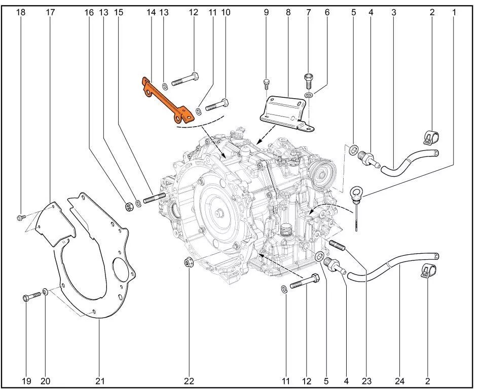 Место установки вы можете посмотреть на представленной схеме, кронштейн выделен оранжевым цветом.