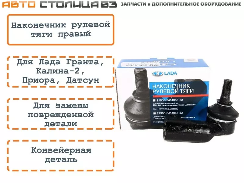 Штатный заводской наконечник рулевой тяги правый для автомобилей Лада Гранта, Калина-2, Приора, Датсун, ВАЗ 2110-2112.