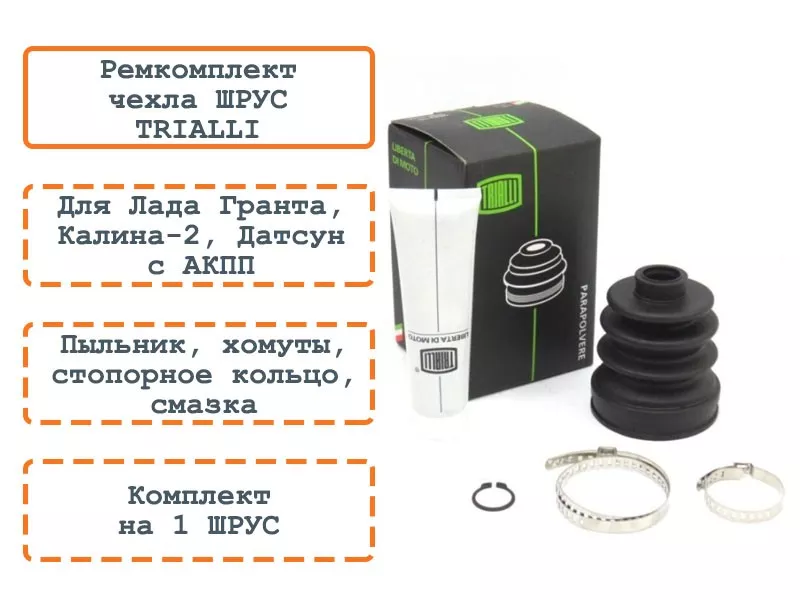 Данный ремкомплект отлично подойдет, если ваш пыльник потрескался или надорвался, но ШРУС еще не вышел из строя. Замена пыльника продлит срок службы ШРУС.