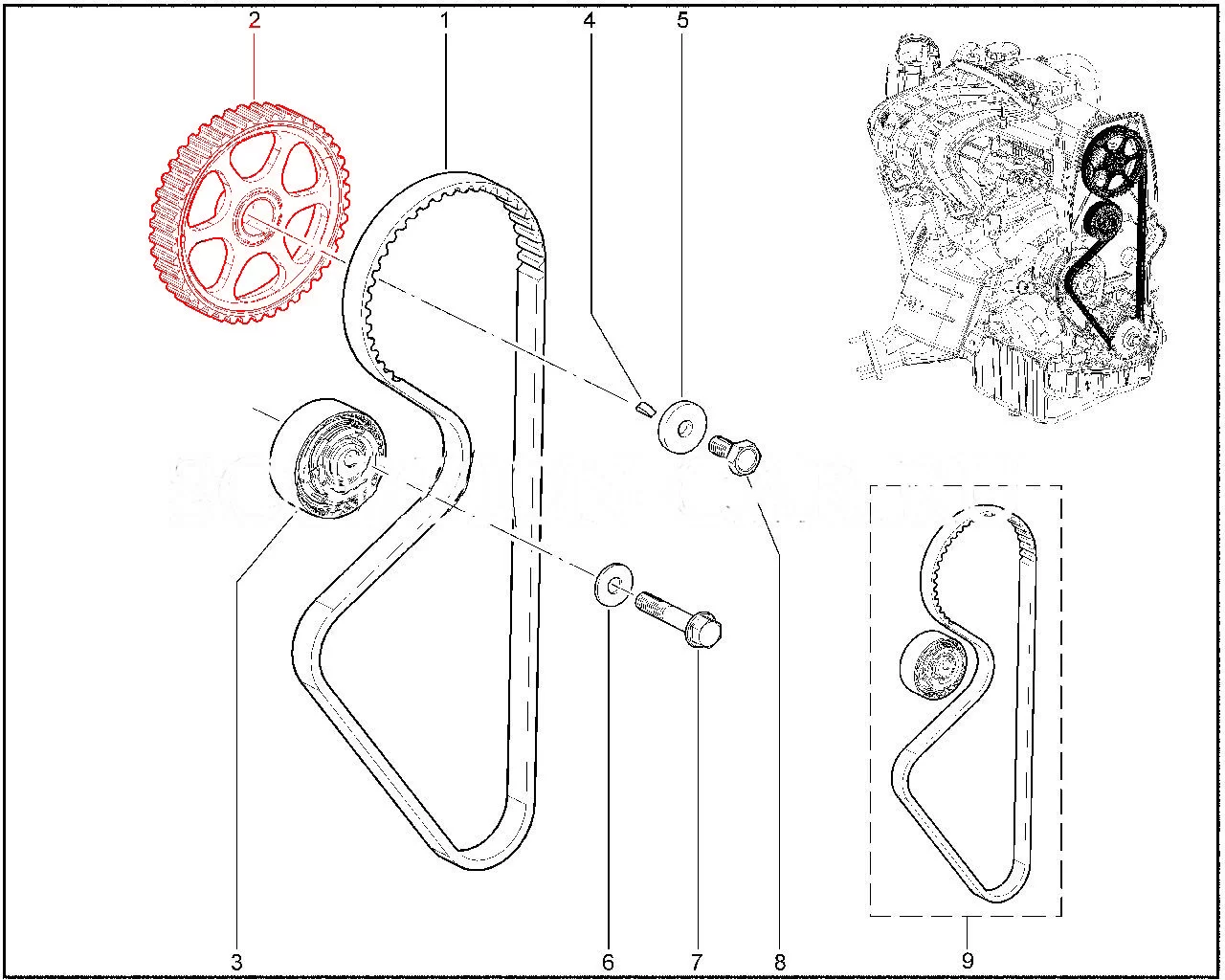 Шкив распредвала - это деталь привода газораспределительного механизма двигателя. Шкив приводится в движение при помощи зубчатого ремня, который также соединен с шкивом коленчатого вала. В некоторых шкивах есть возможность изменения положения распредвала (центральной части шкива) относительно внешней части шкива, где происходит зацепление зубьев шкива с зубьями ремня. При помощи данного шкива происходит синхронизация коленчатого вала с распределительным, что в свою очередь заставляет крутиться распределительный вал, благодаря которому запускаются остальные процессы газораспределительного механизма.