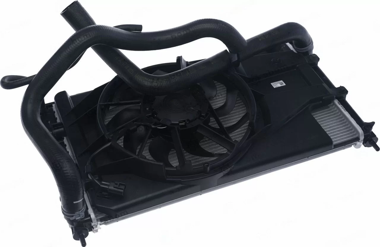 Радиатор с трубопроводами и электровентилятором в сборе для Лада Гранта и Калина-2.