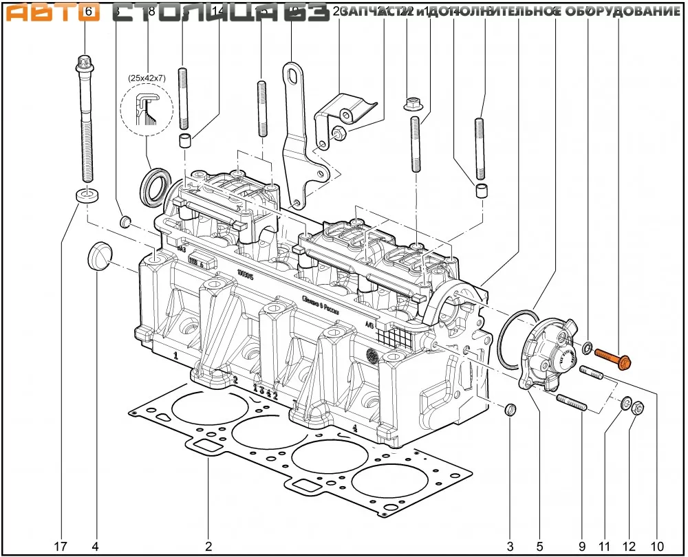 Данный болт применятся на заводе для крепления заглушки ГБЦ, на автомобилях у которых установлен 8 клапанный двигатель. Более подробное место установки мы выделили на схеме.