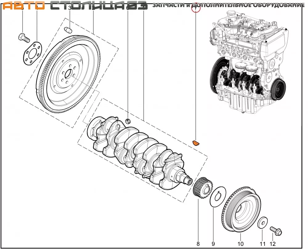 Шпонка шкива коленвала для автомобилей Лада Веста, Иксрей, Ларгус Калина, Калина-2, Гранта, Приора, Датсун, ВАЗ 2108-2115.