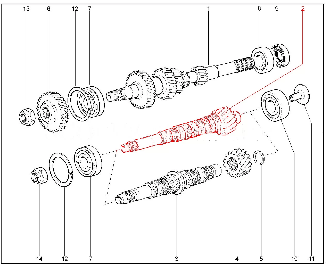 Штатный вал вторичный для коробки передач для Лада Гранта, Калина и Приора.