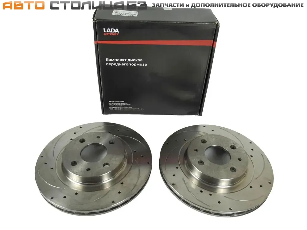 Оригинальные тормозные диски Лада Спорт R14 с перфорацией и насечками. Стоимость указана за комплект из 2 дисков.