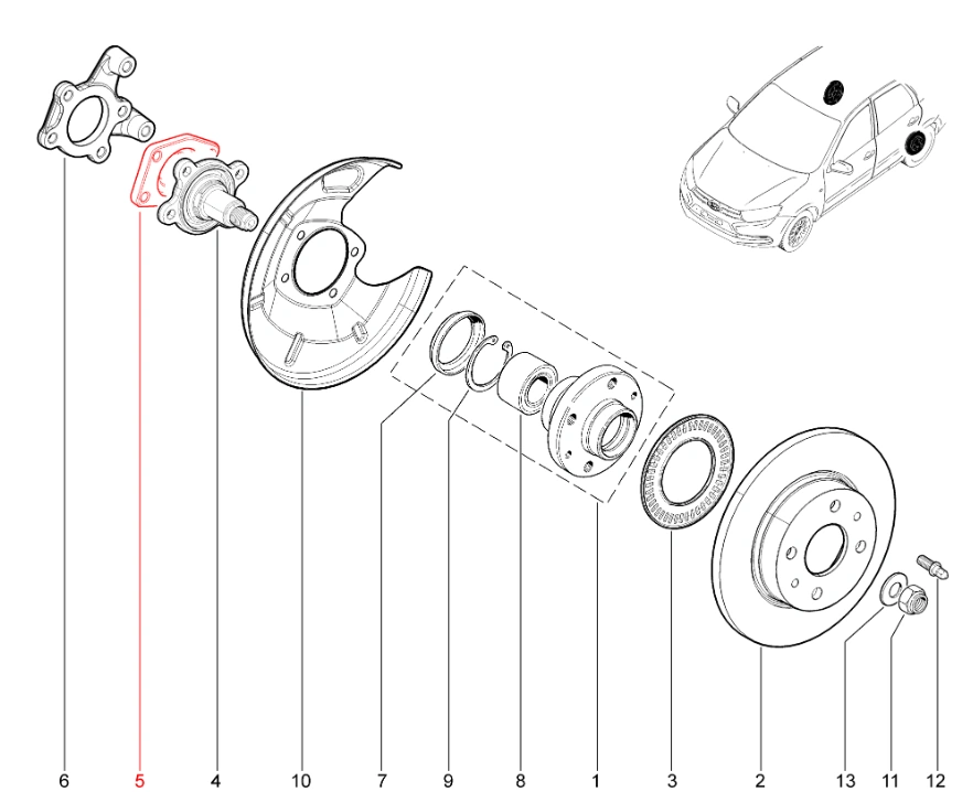 Штатная оригинальная проставка оси ступицы задней подвески для Lada Granta Sport, Kalina Sport.