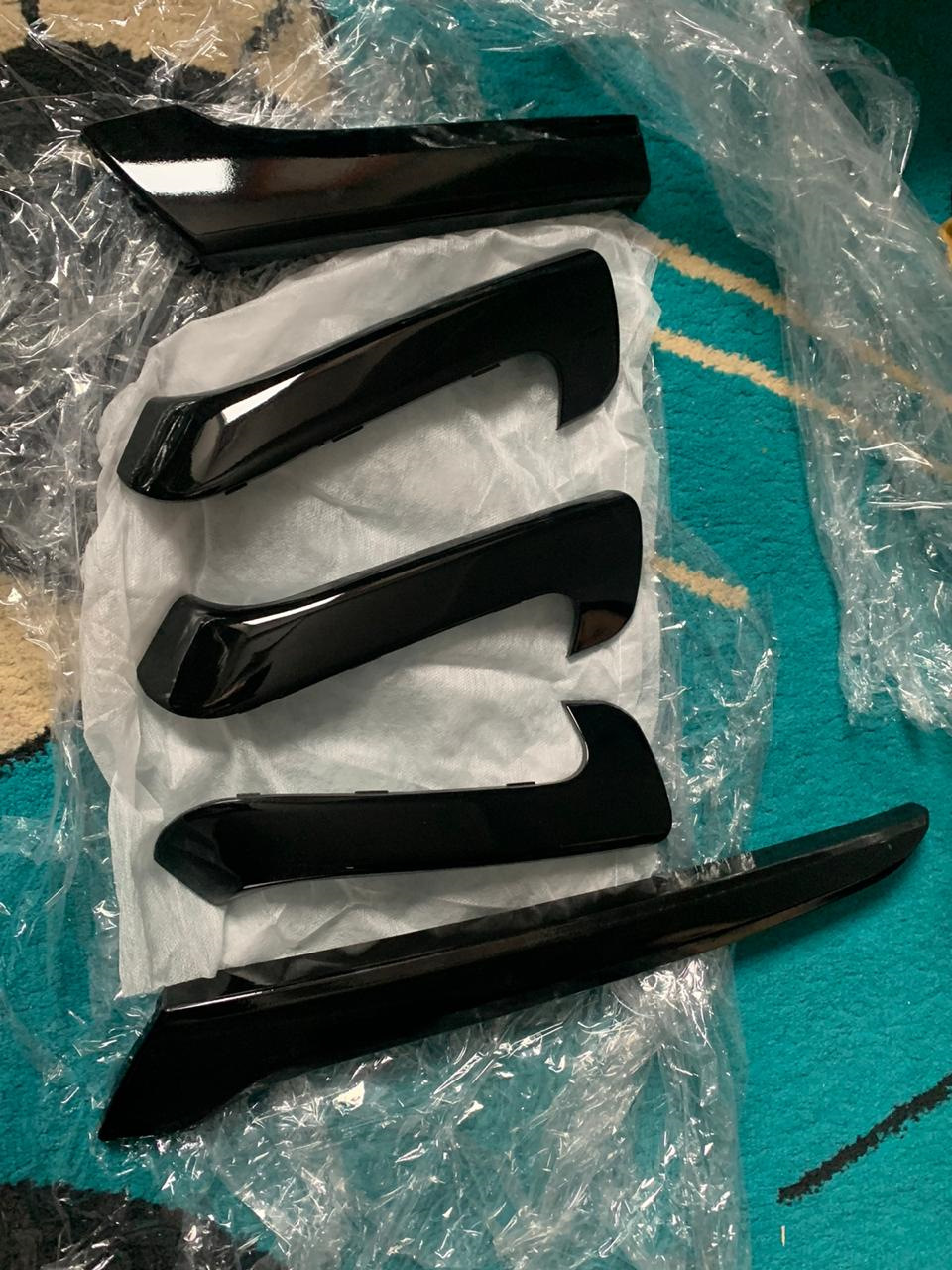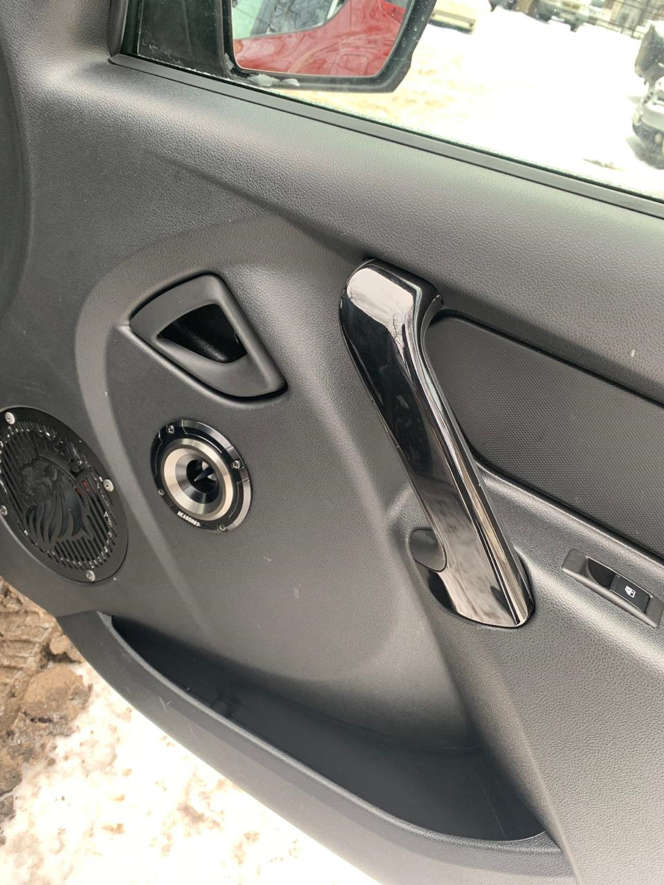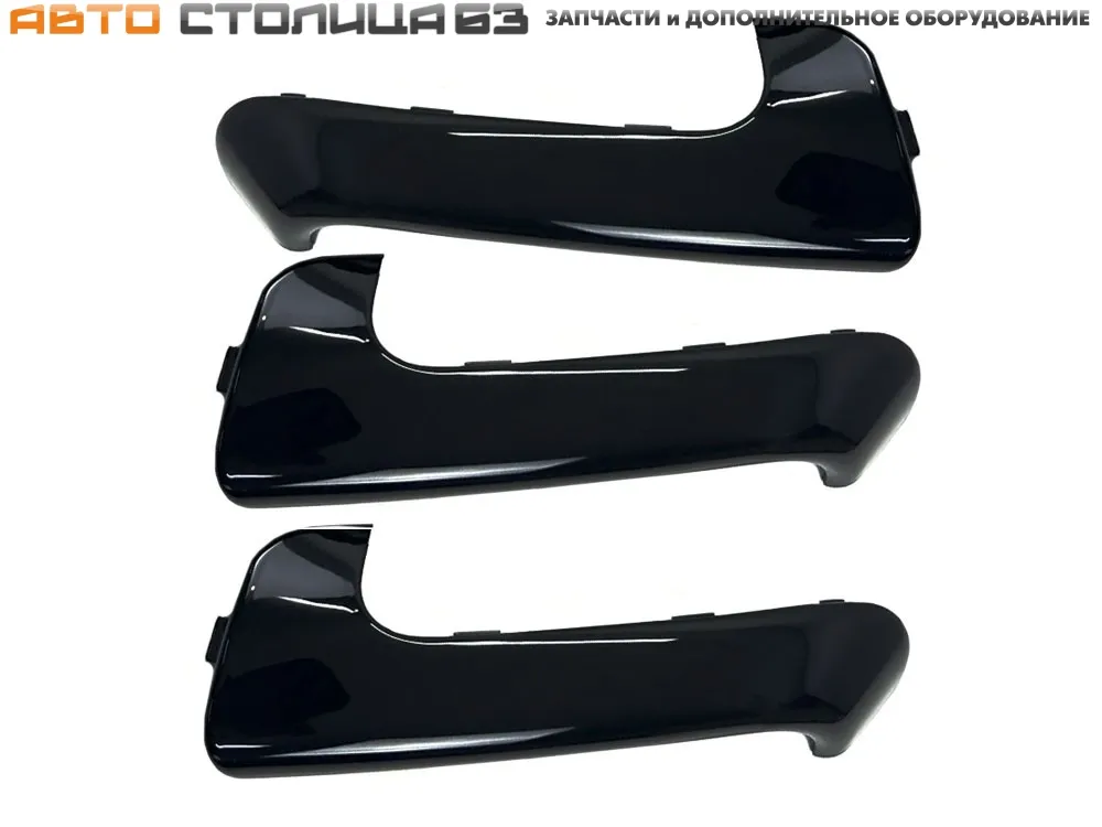 Черные глянцевые накладки ручек дверей внутренних для автомобилей Лада Гранта, Калина-2 и Датсун. Накладки устанавливаются взамен штатных накладок ручек.