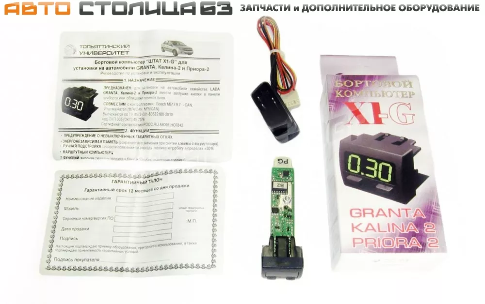 Бортовой компьютер ШТАТ X1G предназначен для установки на автомобили семейства Гранта, Калина-2, Приора-2 и Датсун вместо заглушки кнопки панели приборов. Совместим со всеми контроллерами по CAN-шине.