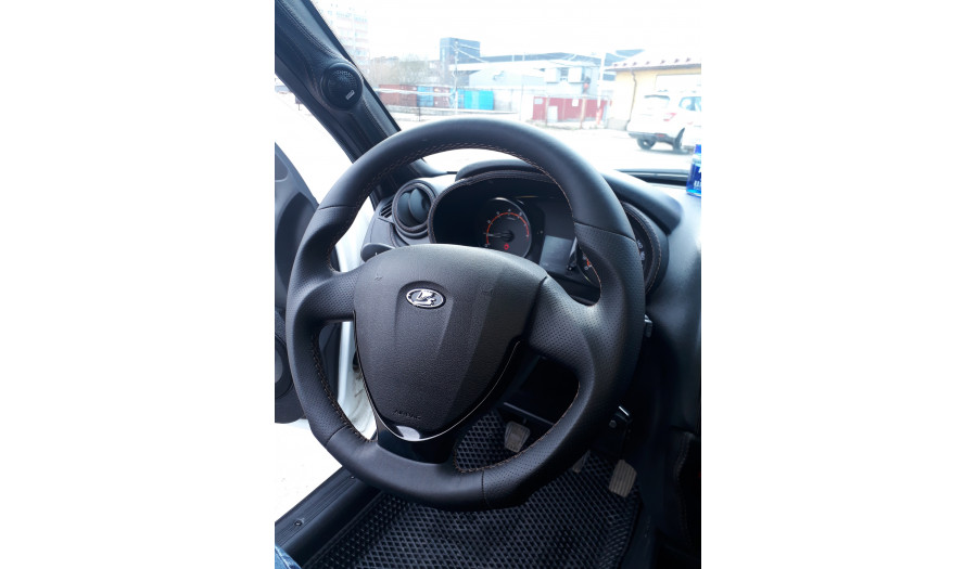 Черная глянцевая вставка руля (рогатка) для автомобилей Лада Калина-2, Гранта FL и Приора-2.